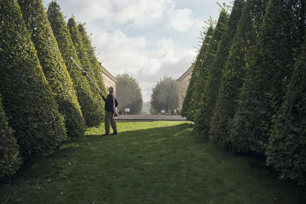 Husqvarna 520iHT4 is a high-capacity battery-powered telescopic pole hedge trimmer with up to 4.5 m reach, designed for professional use. It cuts wide, high and low hedges efficiently thanks to the length adjustable telescopic tube and angle adjustable cutter bar. The cutter bar also folds easily for easier transport and storage. This machine combines market-leading performance with zero direct emissions, low weight, low vibration levels and extremely quiet operation, so you can use it in noise-sensitive environments. The rear impact guard protects the integrated battery to prevent wear and damage effectively. Compatible with all Husqvarna BLi-batteries and chargers. Weatherproof IPX 4.