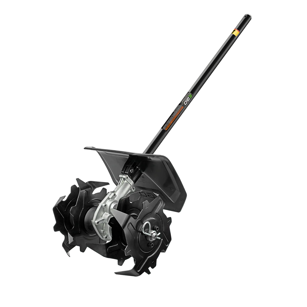 Turn over soil and maintain garden beds with ease using the EGO POWER+ Multi-Head Carbon Fiber Cultivator Attachment. Part of the EGO POWER+ Multi-Head system, the tiller attachment features steel tines with an adjustable width from 8 to 9.5 inches for easy tilling between shrubs, bushes, trees, and flowers. The rototiller attachment features a large debris guard to shield you from flying dirt and debris as you cultivate garden and flower beds. The attachment has a lightweight and durable carbon fiber shaft protected by a lifetime warranty. EGO attachments like the garden tiller are designed specifically for your EGO POWER+ Power Head (PH1400, PH1420, available separately) and offer the highest quality and performance.