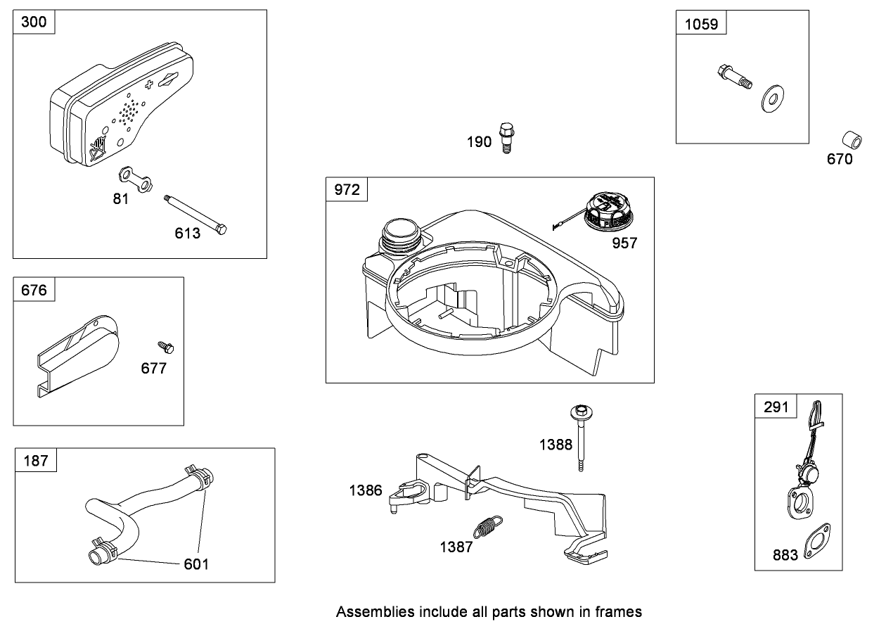 Muffler and Fuel Tank Assembly Briggs and Stratton 126T05 0219 B1